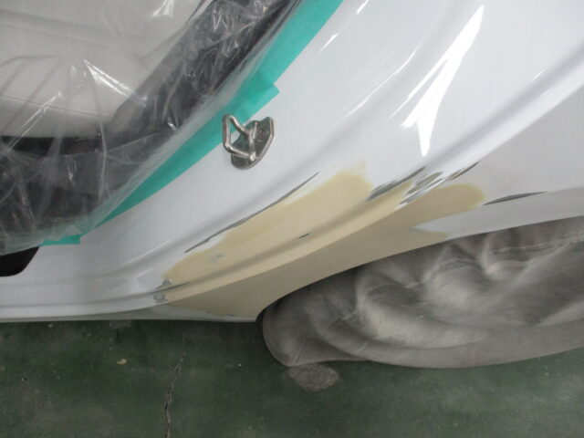 鈑金修理部分に残る僅かな凹凸にはパテを付けて成形します。