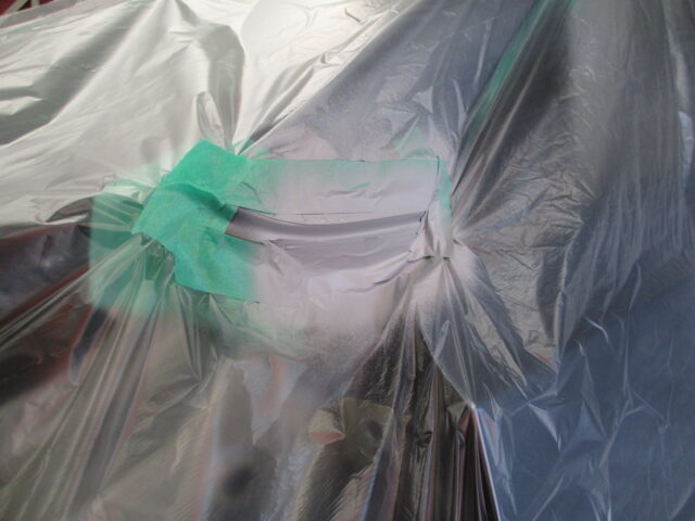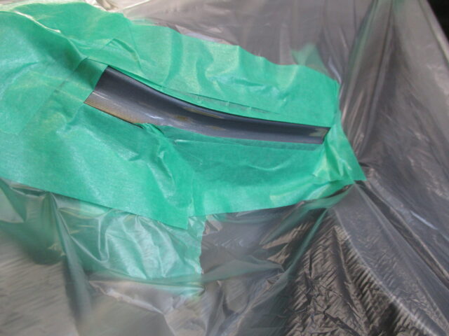 傷を削り落した部分にプライマーサフェーサーを塗装し、しっかりシールします。