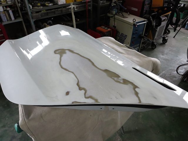 板金修理部分に僅かに残る凹凸にはパテを付けて綺麗に成形します。