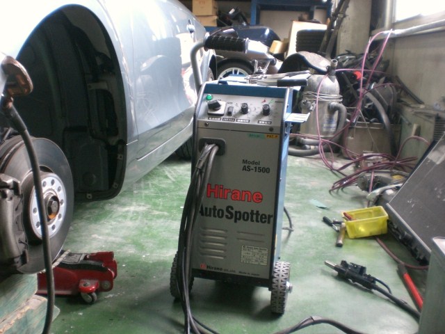 次にアルミ専用のスタッド溶接機を使い表側から引き出し作業を行います。