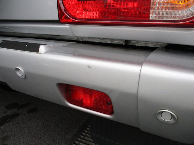 メルセデスベンツ G350dのリアバンパーは3分割の構造になっておりますが、よく見ると右側のコーナーカバーが大きく変形しています。