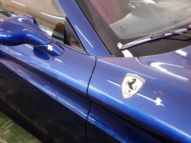 塗装作業完了後、取り外していた部品を全て元通りに組み付け、洗車・最終仕上げ磨きをしてフェラーリ カリフォルニアTの板金塗装 修理は完了です。